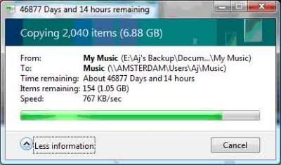 My pc cant figure out how long its gonna take to copy a 135Mb Pdf file from a cd.
